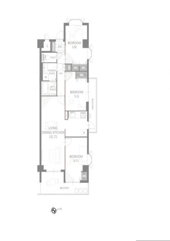 - 洋室 6.1帖 洋室 5.8帖 洋室 5.3帖 LDK 15.7帖