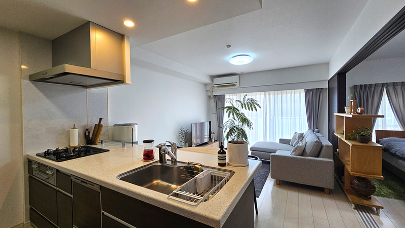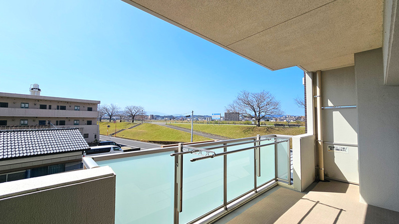 おすすめポイント宮崎市内を雄大に流れる大淀川。その穏やかな水面を渡る風と豊かな自然を身近に感じる場所に、「レクシア宮崎大橋アクアテラス」は佇んでいます。都市の利便性と自然の潤いを兼ね備えたこの地で、今回ご紹介するのは南向きの開口部を備えた2階の2LDKです。 リビングの大きな窓からは、やわらかな自然光がたっぷりと降り注ぎます。視線の先には大淀川の流れと堤防の緑が広がり、前面に高い建物がないため2階でも十分な開放感があります。高層階とは異なり、生活の目線に近い距離で水面の揺らぎや木々の息吹を感じられるのが、このお部屋ならではの魅力です。 暮らしの変化に柔軟に対応できる間取りも特長です。リビングに隣接する洋室は引き戸で仕切られており、開け放てば開放的な一体空間として、閉じれば独立した個室として使えます。また、空間を見渡せる対面式キッチンや、無駄のない生活動線が、日々の暮らしの快適性を高めてくれます。 目の前の大淀川沿いには遊歩道が整備され、ジョギングや散歩など、自然と触れ合う時間が日常に溶け込みます。共用部は落ち着いたデザインのエントランスやラウンジが品格を漂わせ、オートロックや宅配ボックスなど、安心と利便性を支える設備もしっかりと整っています。 室内はクロス張替済みで、フローリングや建具も良好なコンディションが保たれています。大規模なリフォームなしでそのまま入居できるのは大きなメリットです。人造大理石天板で食洗機付きのキッチン、収納力のある三面鏡洗面台、ゆとりある浴室、自動開閉機能付きトイレなど、細部まで実用性と快適性が整えられています。
