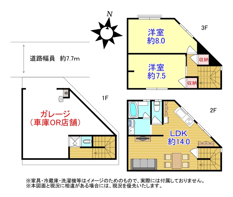 広々ガレージ ※1F 洗面・トイレあり。